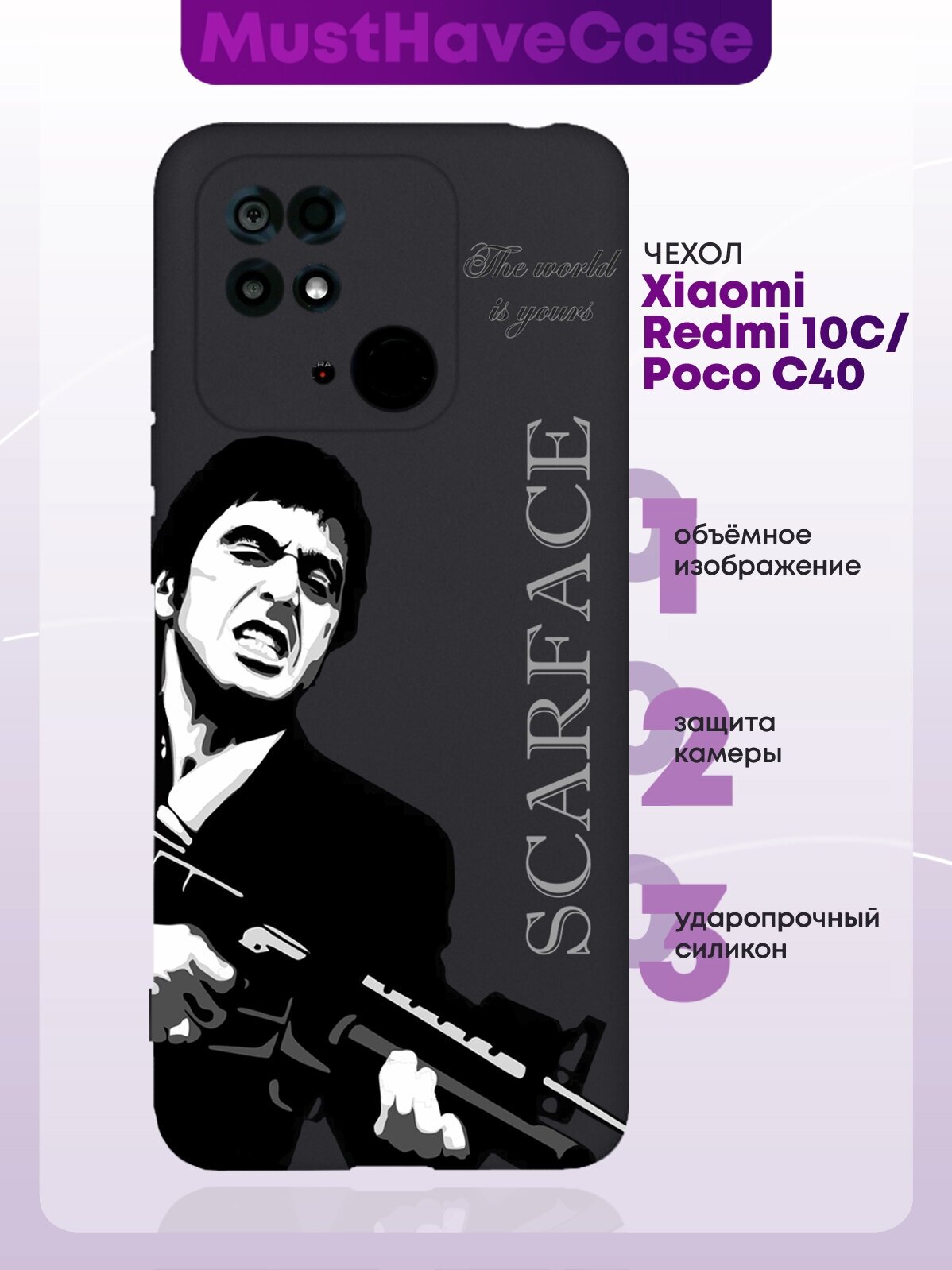 Черный силиконовый чехол для Xiaomi Redmi 10C Scarface Tony Montana Лицо со шрамом для Сяоми Редми 10С