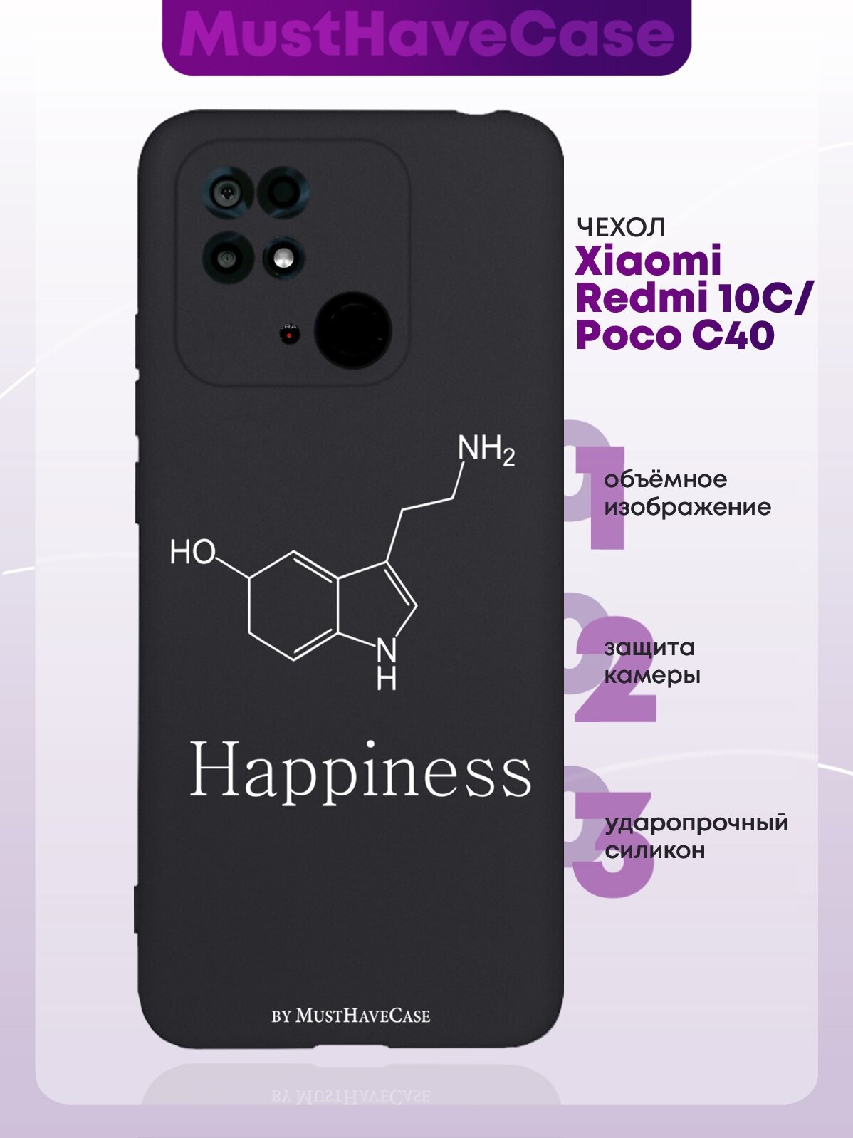 Чехлы для мобильных телефонов Черный силиконовый чехол для Xiaomi Redmi 10C/ Poco C40 Молекула счастья для Сяоми Редми 10С