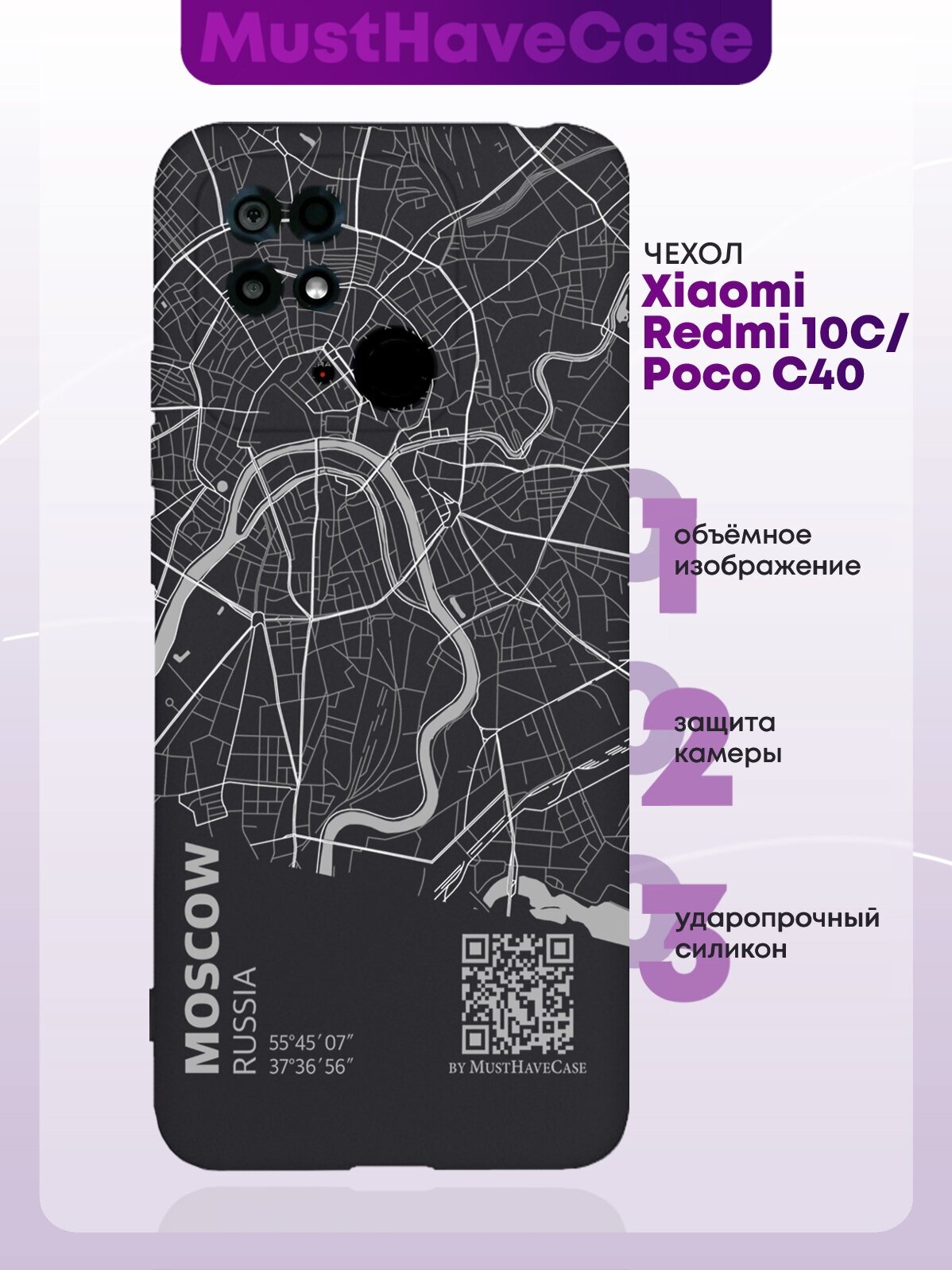 Чехлы для мобильных телефонов Черный силиконовый чехол для Xiaomi Redmi 10C/ Poco C40 Карта Москвы для Сяоми Редми 10С