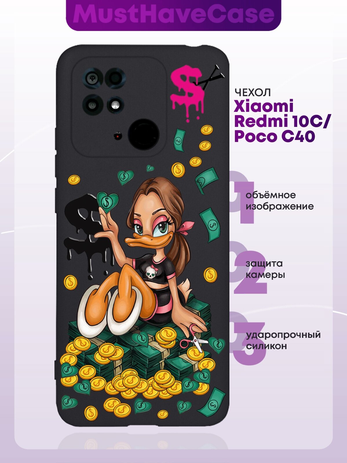 Черный силиконовый чехол для Xiaomi Redmi 10C/ Poco C40 Богатая Утка Bad Girl для Сяоми Редми 10С