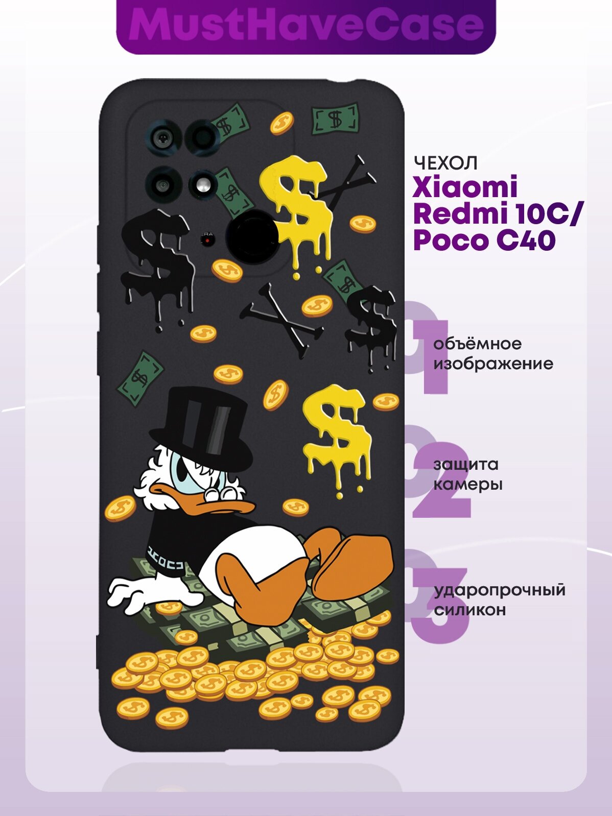 Чехлы для мобильных телефонов Черный силиконовый чехол для Xiaomi Redmi 10C/ Poco C40 Богатенькая Утка для Сяоми Редми 10С