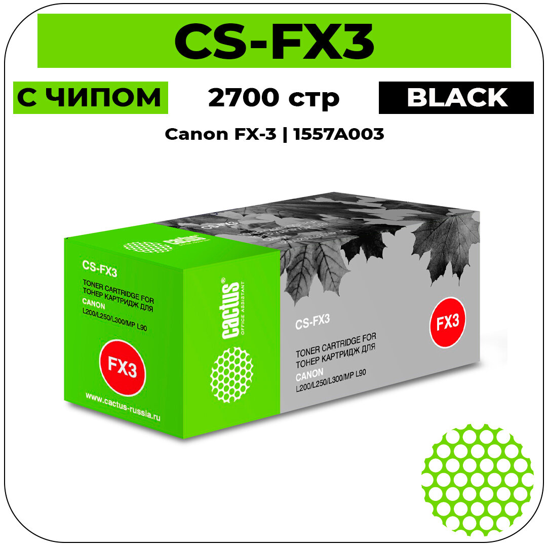 Картридж CACTUS CS-FX3 для принтеров CANON L200/L250/L300/MP L90, чёрный, 2700 стр.