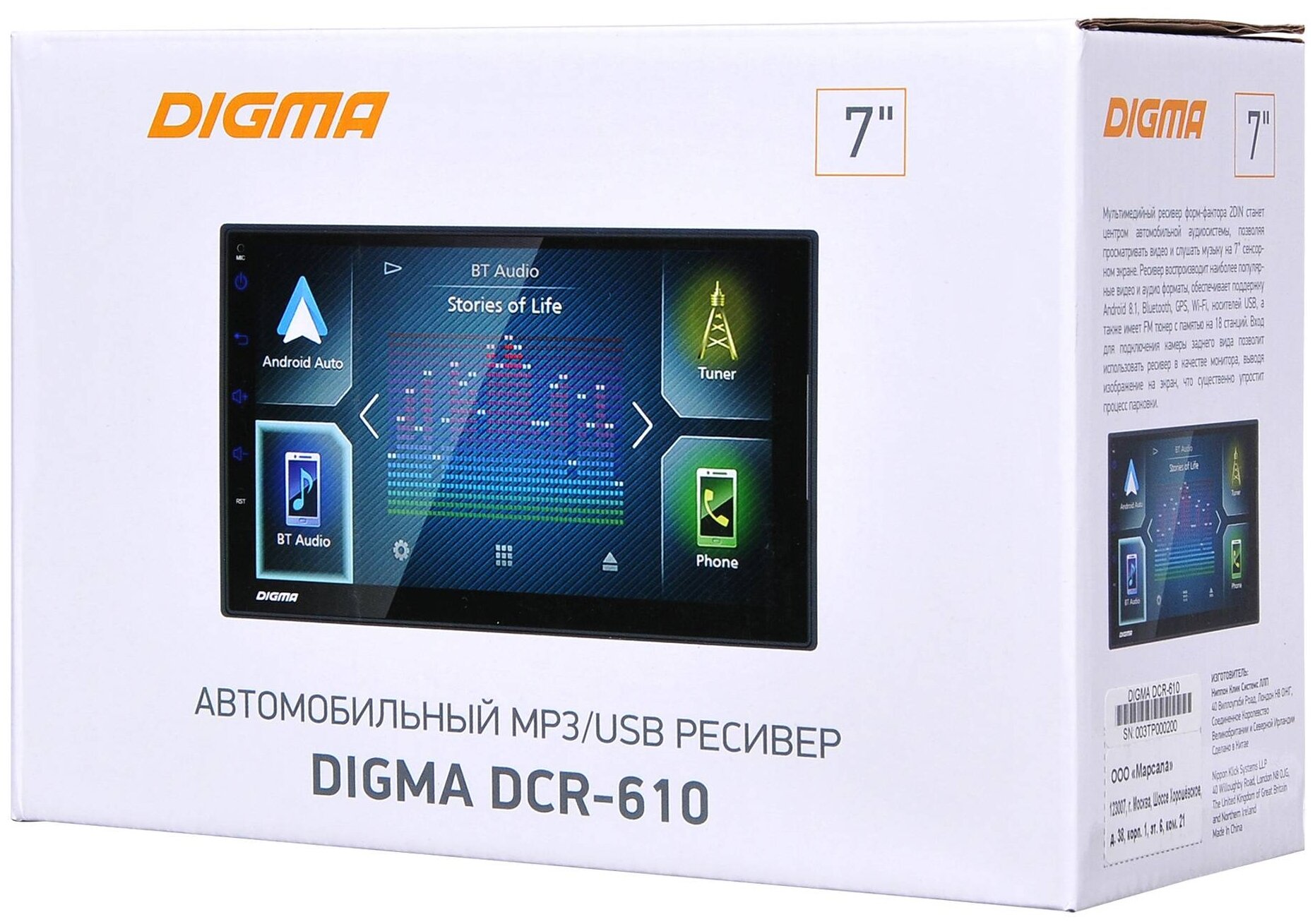Лучшие цены. Мощность: 4x50Вт Цвет: черный PartNumber/Артикул Производителя: DCR-610 Тип дисплея: многоцветный Диагональ дисплея: 7 Бренд: DIGMA Сенсорный дисплей: ДА Типоразмер: 2 din Цвет подсветки клавиш магнитолы: разноцветная Поддержка MPEG4: ДА Воспроизведение с USB носителей: ДА Радио тюнер: FM/AM Особенности: OC Android Процессор Cortex A7 Quad Core 1,2ГГц. Оперативная память DDR3 1Гб, RAM 16Гб Модуль Bluetooth: ДА Память (станций). Магазины в вашем городе.