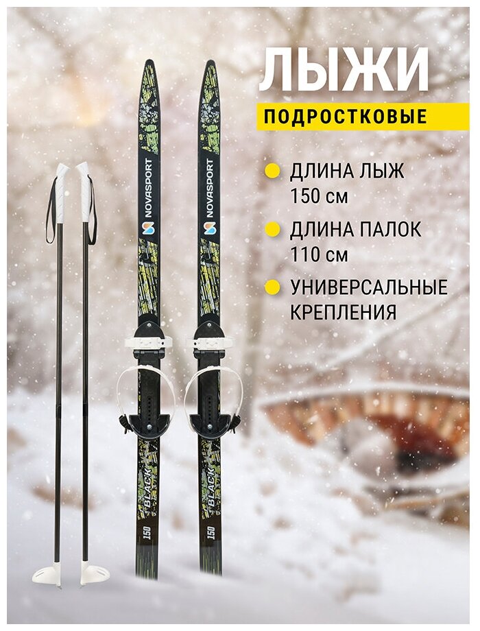 Лыжи Лыжный комплект подростковый NovaSport Black с универсальным креплением 150/110