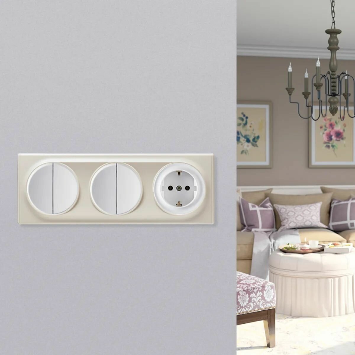 Рамки для розеток и выключателей Комплект. Рамка OneKeyElectro тройная, цвет бежевый (3шт.).