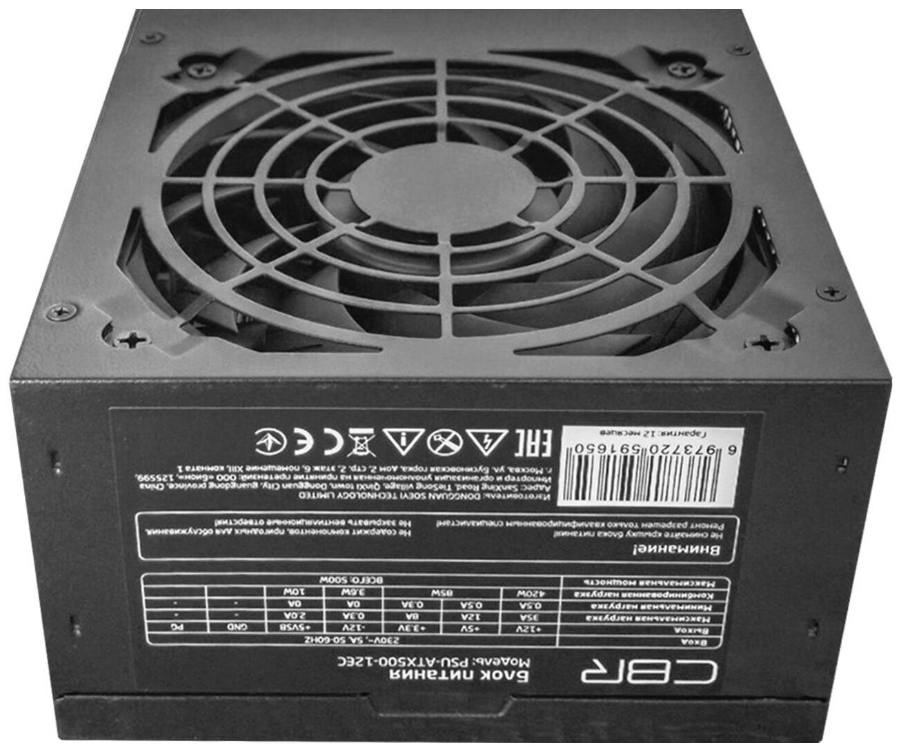 Блок питания CBR ATX 500W, 12cm fan, 20+4pin/1*4+4pin/1*6+2pin/2*IDE/4*SATA, кабель питания 1.2м, черный (PSU-ATX500-12EC)