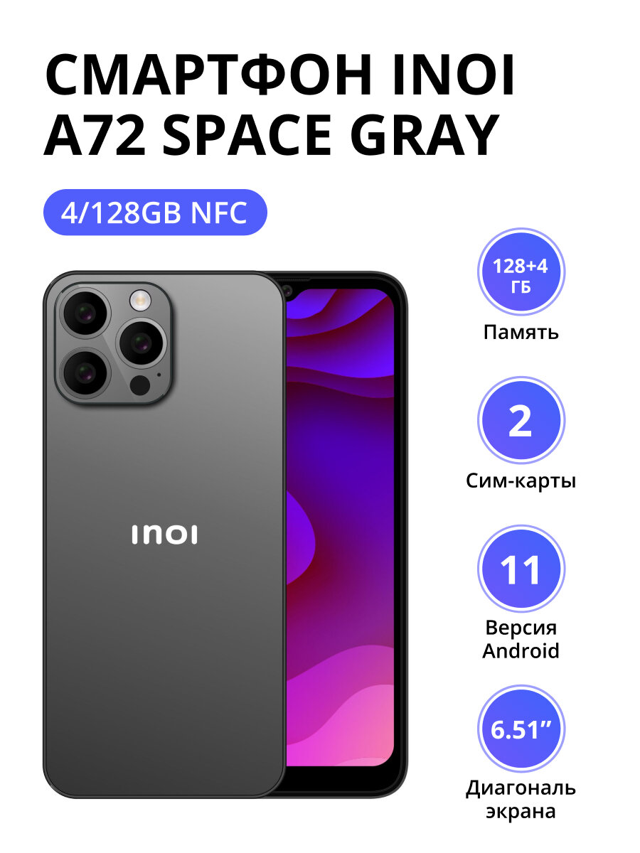 Смартфон INOI A72 NFC 4/128Gb Space Gray 8 990 ₽ Подробнее