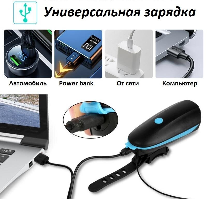 Велофонари Мощный сверхъяркий передний велосипедный фонарь на аккумуляторе с громким сигналом