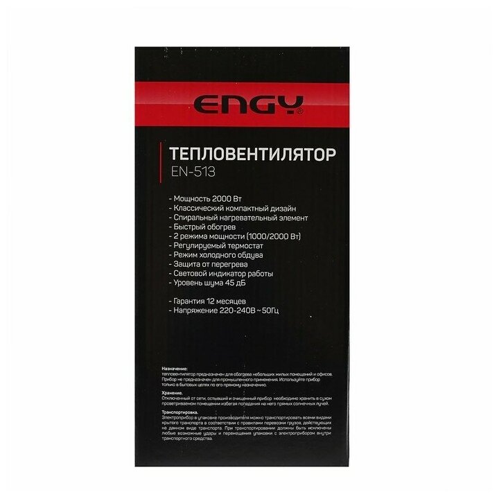 Тепловентилятор ENGY (2000 Вт, электрический, 2 режима, EN-513, (014985))