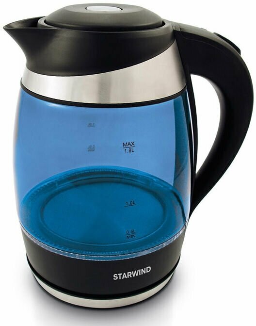 Чайник электрический Starwind SKG2218 голубой/черный, стекло