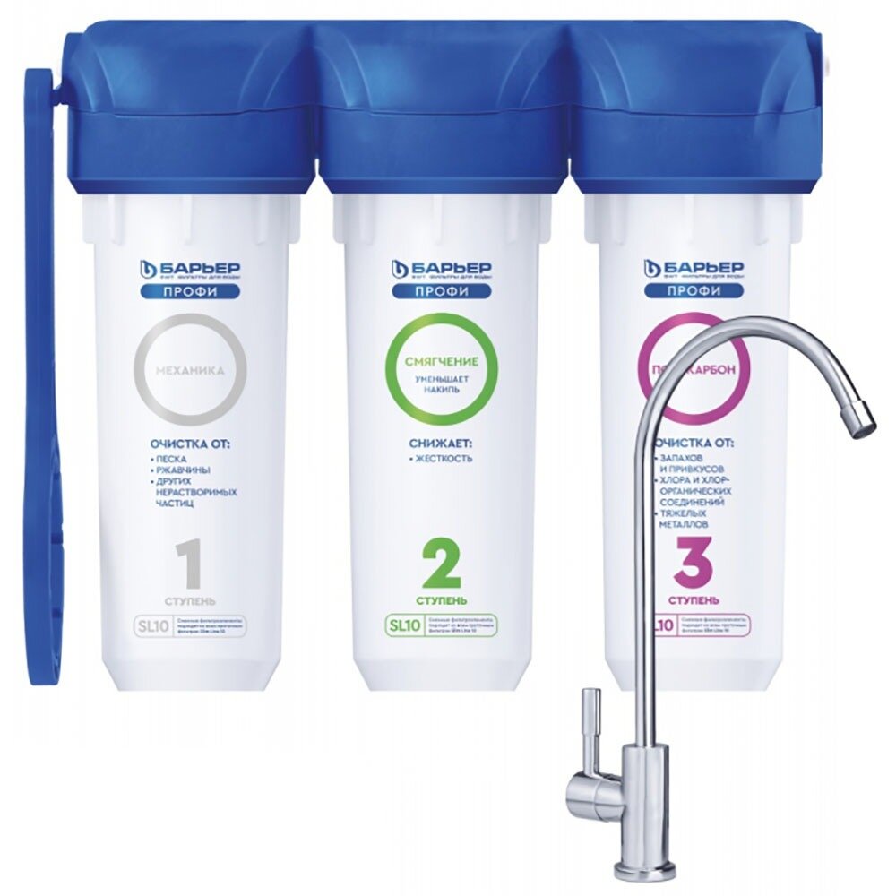 Фильтр для воды Барьер Профи Жесткость трехступенчатый проточный с краном 5 мкм 10SL