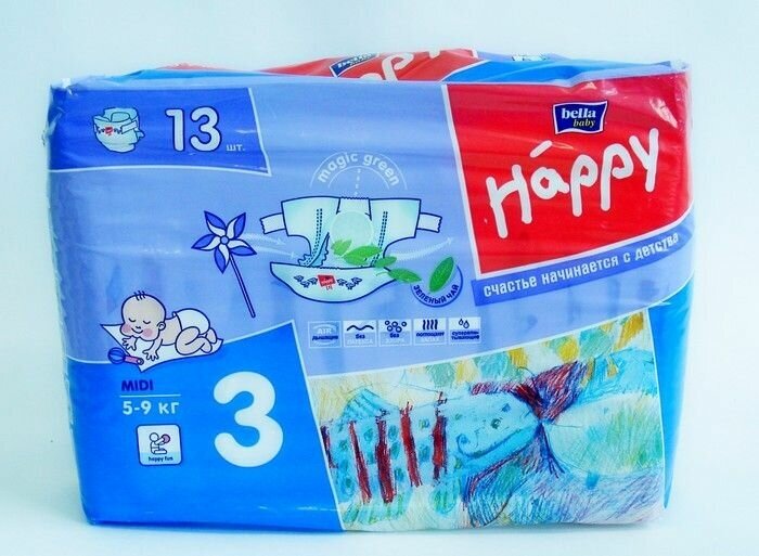 Bella Baby Happy подгузники midi 3 (5-9 кг), 13 шт.