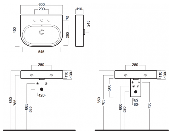 HATRIA Area Y0UH01 Раковина для ванной комнаты 60*45 см | универсальная (белая глянцевая)