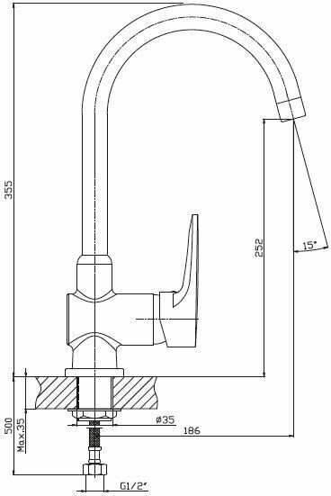 GRANFEST Смеситель для кухни U-обр. D-35мм черный