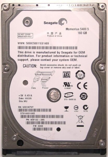 Жесткий диск Жесткий диск Seagate ST9160310AS 160Gb 5400 SATAII 2,5" HDD