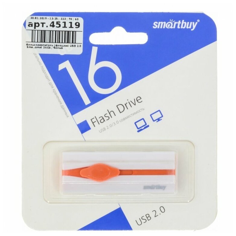 Лучшие цены. Производитель: SmartBuy ; Защита от перезаписи: Нет ; Материал корпуса: пластик ; Стандарт USB: USB 2.0 ; Цвет: белый ; Тип разъема: выдвижной ; Подарочный дизайн: Нет ; Разъем OTG: нет ; Влагозащита: Нет ; Объем памяти:16 Гб; Скорость записи данных: МБ/с; Скорость чтения данных: МБ/с. Магазины в вашем городе.