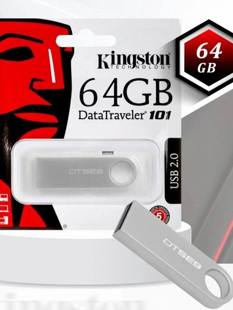 USB Flash (флешка) Флешка Kingston DataTraveler SE9 64 ГБ, 1 шт., серебристый