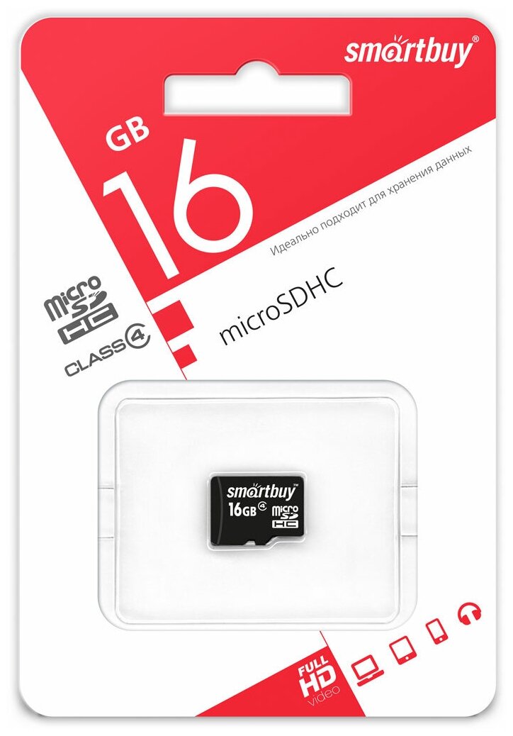 Карта памяти MicroSDHC 16 Gb CL4 Smart Buy в блистере без адаптера