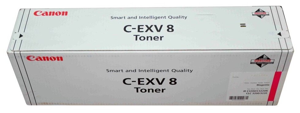 Лучшие цены. Производитель печатающей техники Canon, в своих устройствах рекомендует использовать только оригинальные картриджи C-EXV8M, произведённые им самим, на том же заводе, что и принтер (МФУ). Оригинальный принт-картридж, C-EXV8M является гарантом стабильной и качественной печати на Canon CLC 2620, 3200, 3220, Canon iR C3200, Canon iR C3200N, C3220, C3220N, C2620, C2620N, C3200, C3200N, C3220, C3220i, C3220N, Canon S 3200. Магазины в вашем городе.