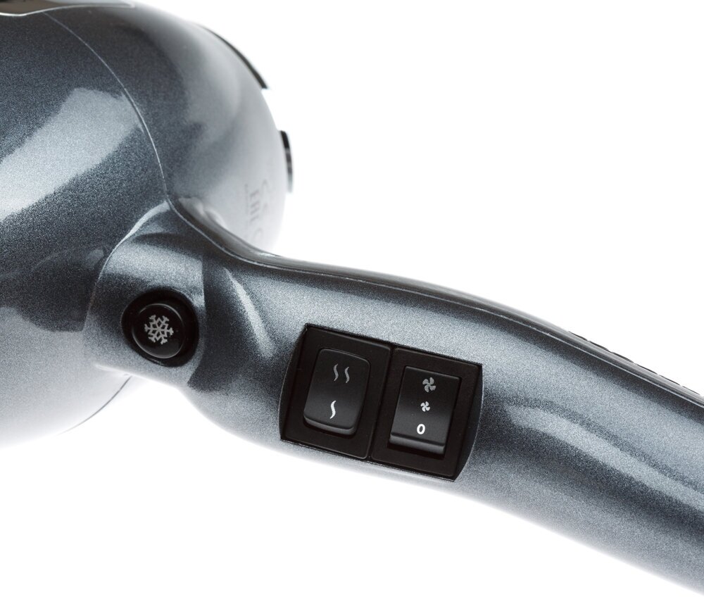 Фен DEWAL PRO ERGOLIFE COMPACT c ионизацией, графит, вес 550 гр, 2000 Вт, 2 насадки, провод 3 м 03-002 Grafit