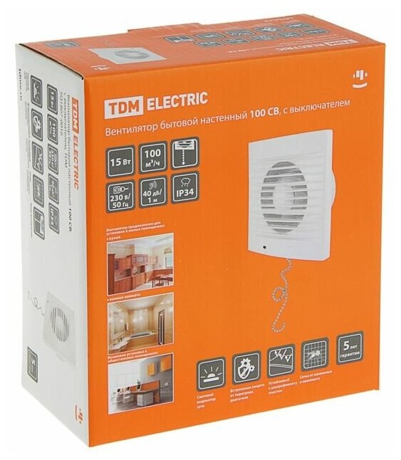 Вентилятор бытовой настенный 100 СВ, с выключателем, TDM