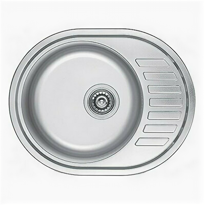 Лучшие цены. Kaiser KSS-5745L - овальная кухонная мойка с чашей с левой стороны. С правой стороны расположена сливная полка с рисунком в виде параллельных прямоугольников, подходящая для просушивания. Под смеситель предусмотрено место на крыле. Мойка изготовлена из нержавеющей стали высокого качества. Толщина металла 0.8 мм. Предназначена для врезной установки на столешницу сверху. Комплектация: Сифон. Магазины в вашем городе.