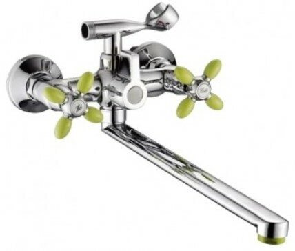 Смеситель Potato P2771-11 для ванны / душа / раковины с длинным (40 см) поворотным изливом, хромированный, Зелёный