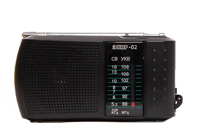 Лучшие цены. Технические характеристики Телескопическая антенна; Ручка-шнур; Шкальное устройство; Питание от батареек типа АА, 3В (не в компл.); Размер 133*72*33 мм; Диапазон принимаемых частот: УКВ/FM-88-108 Мгц; СВ/АМ-530-1600 Кгц. Магазины в вашем городе.