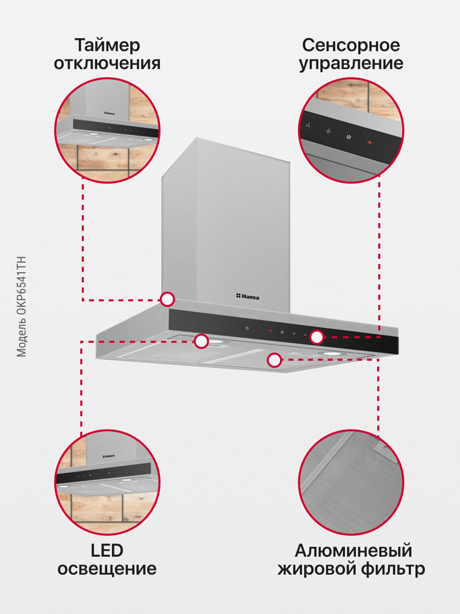 Вытяжка OKP6541TH Вытяжка каминная Hansa OKP6541TH серебристый/черный