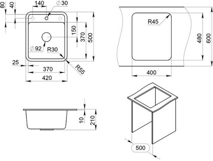 Мойка из композитного материала Granula ST-4202 черный 5 805 ₽ Подробнее