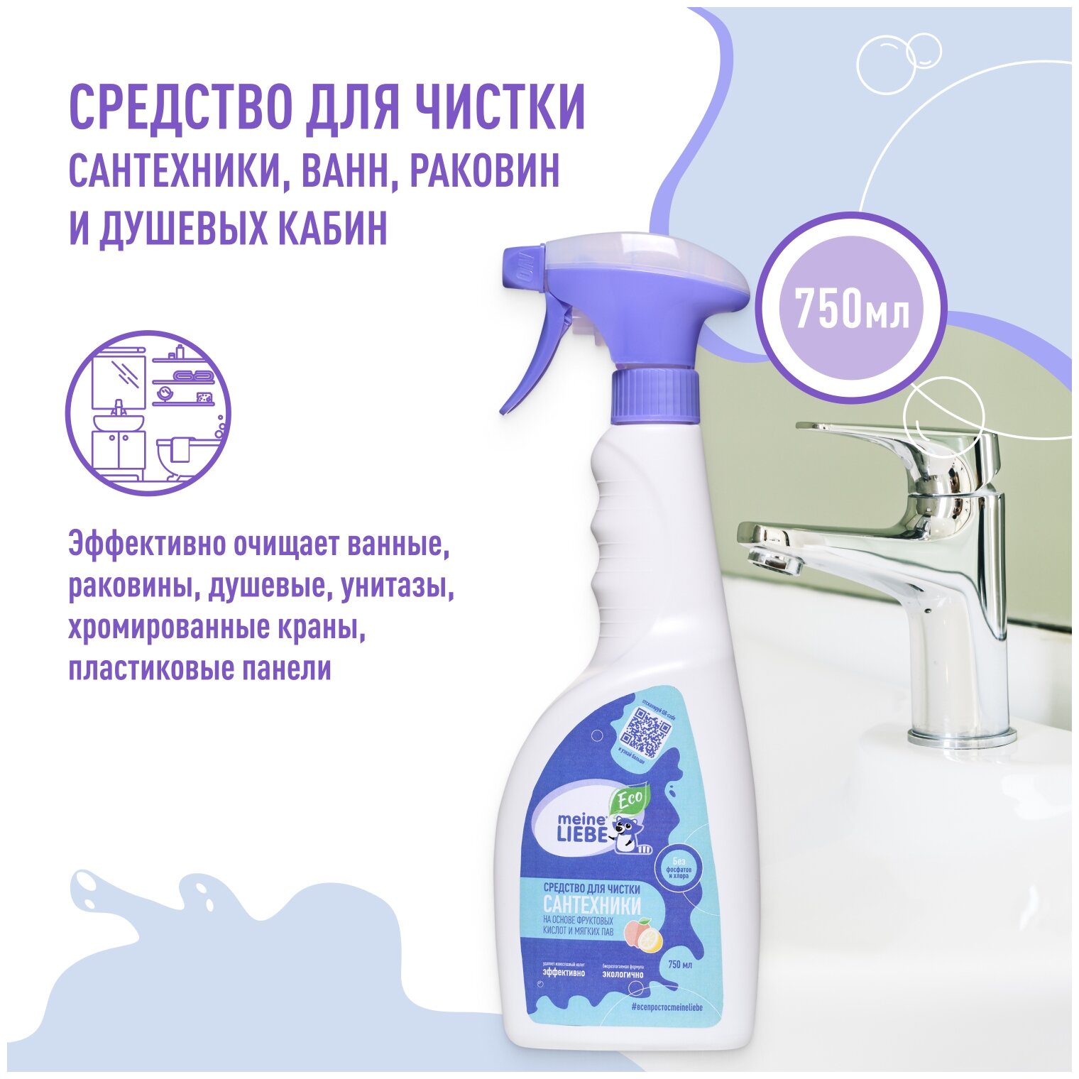 MEINE LIEBE Средство для чистки сантехники ванн, раковин, душевых кабин 500мл