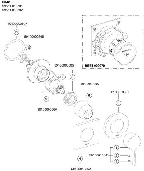 59551019501 IXMO Встраиваемый однорычажный смеситель, наружная часть, хром