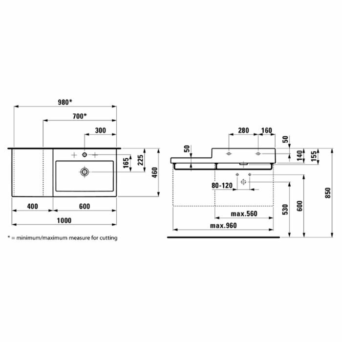 Раковина накладная Laufen Living City 100х46 8.1843.1.000.104.1 полочка слева