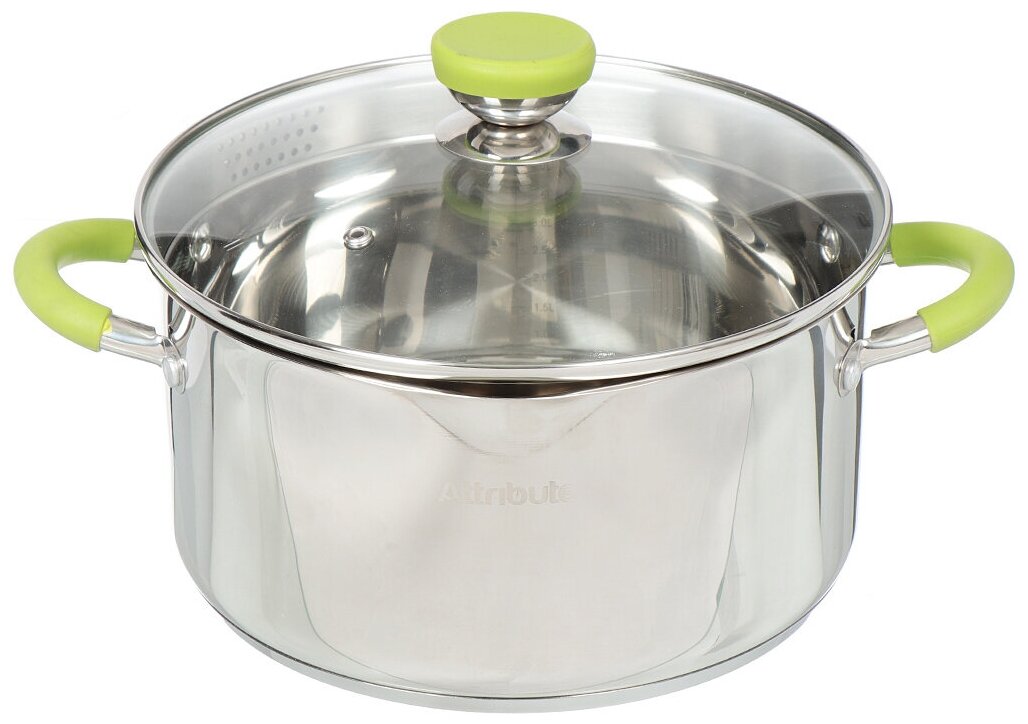 Кастрюля attribute lime 3л 20см нерж.сталь стеклянная крышка индукция