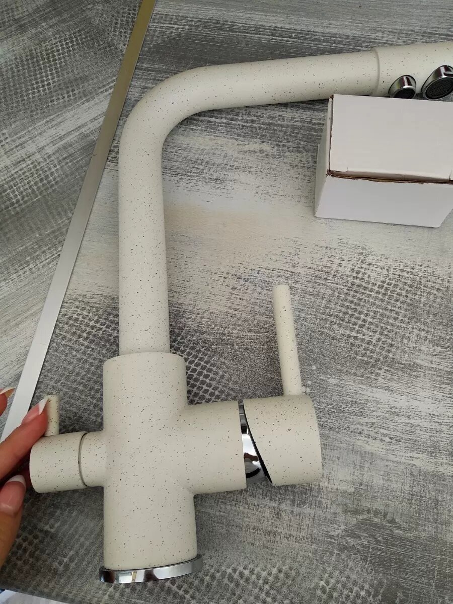 Смеситель для кухни со встроенным краном под фильтр питьевой воды Ledeme R L4055W-3 белый гранит