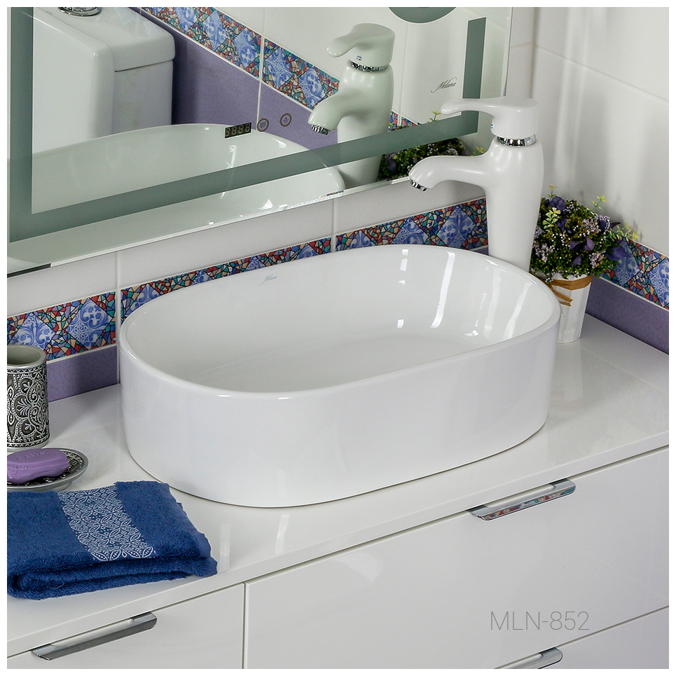 Раковина для ванной MLN-852 (А110) накладная, овальная, белая