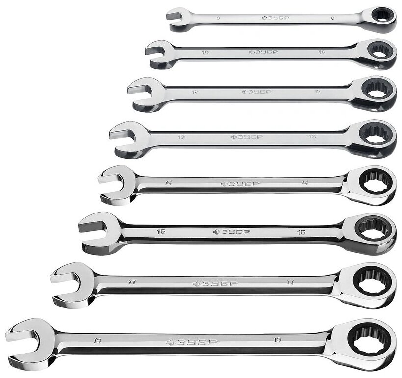 Набор комбинированных гаечных ключей трещоточных 8 шт, 8 - 19 мм, ЗУБР