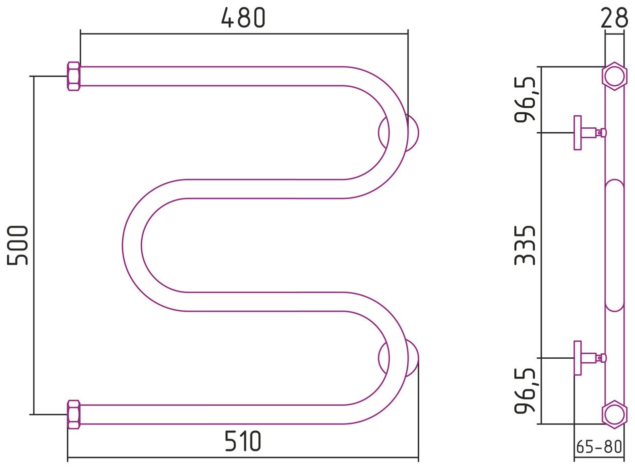 Полотенцесушитель водяной Сунержа М-образный+ 500х500 Без покрытия