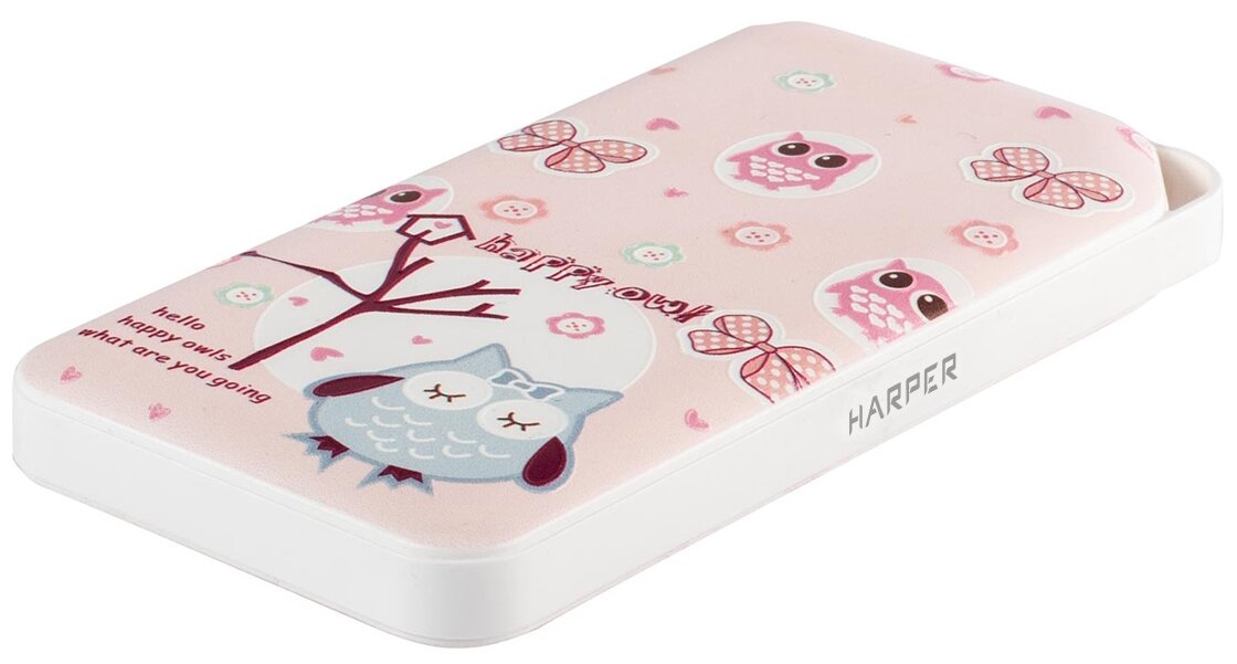 Harper Внешний аккумулятор Harper PB-0019, 10000 мАч, USB, microUSB, 2 А, индикатор, принт "Совы"