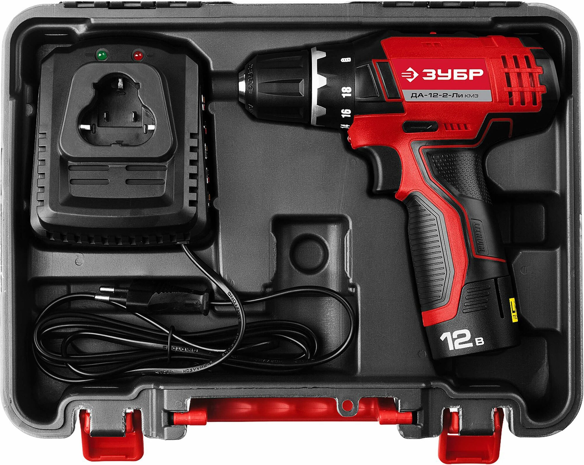 Дрель/шуруповерт ЗУБР ДА-12-2-ЛИ КМ3 Дрель-шуруповерт с АКБ 12.0В 1.5Ач (1АКБ Li-Ion,кейс) ЗУБР