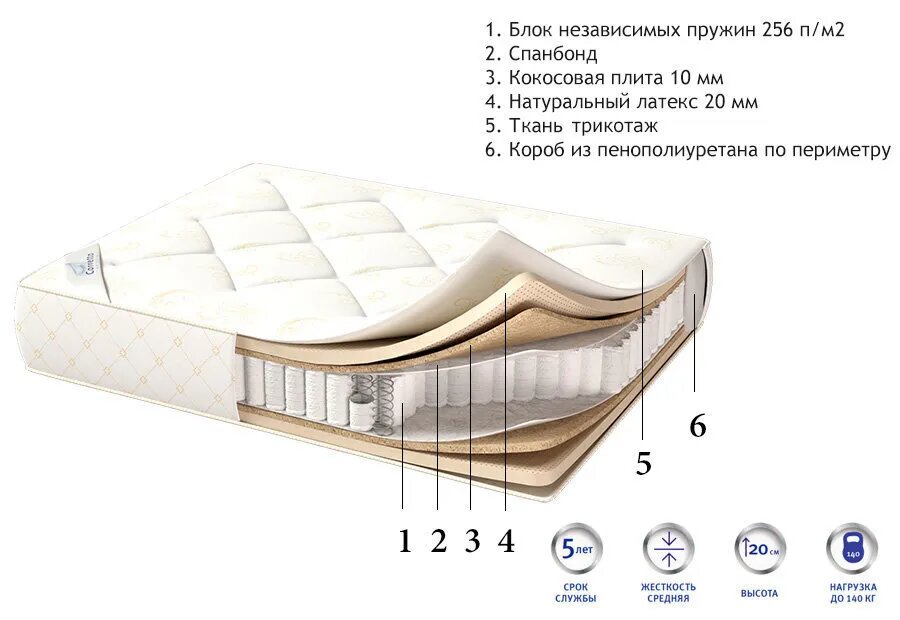 Лучшие цены. Матрас для кровати размером 80х195 см или 800х1950 мм. Ортопедический матрас Corretto Coco Latex Box Spring подойдет для тех, кто предпочитает универсальную, среднюю степень жесткости сторон. Это очень популярная модель в серии Healthy Life. Матрас имеет полностью природный состав: кокосовую койру и натуральный латекс. Основа матраса блок независимых пружин TFK, пружины в котором не имеют четкой взаимосвязи друг с другом. Магазины в вашем городе.