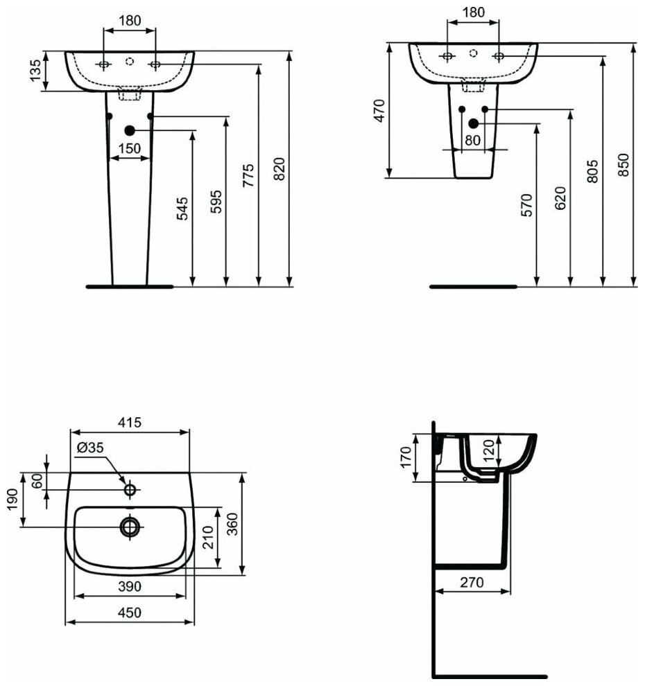 Умывальник Ideal Standard Рукомойник Esedra Guest 45 см T281101