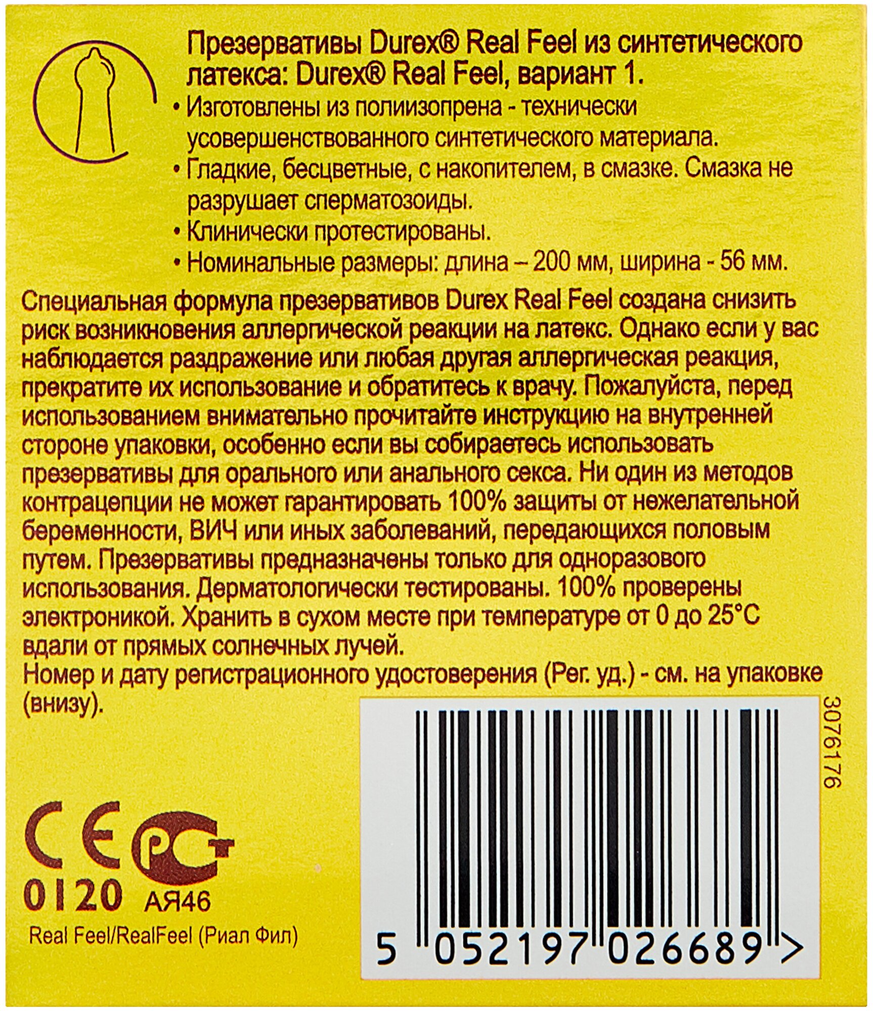 Лыжи Презервативы Durex RealFeel, для естественных ощущений, №3