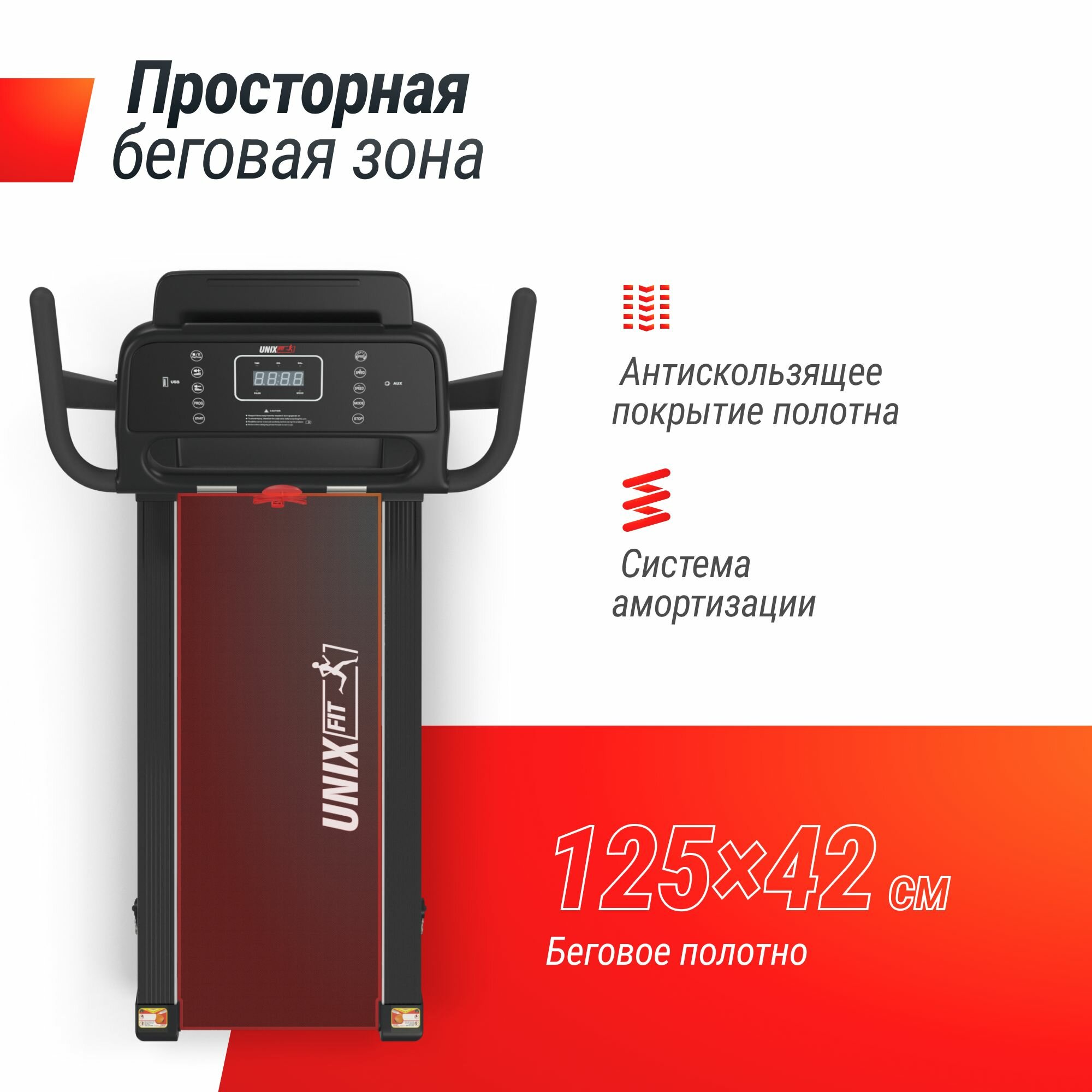 Беговая дорожка UNIX Fit Hi-tech F2 PLUS Dark Storm, коврик в комплекте