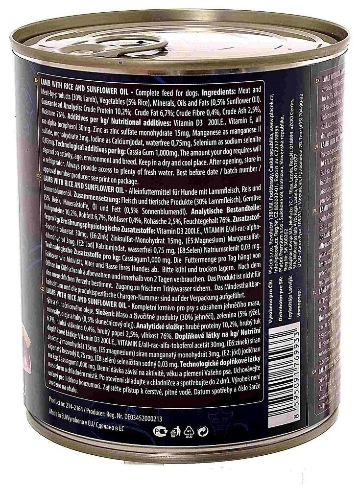 Корм для собак Ontario Консервы для собак: ягненок и рис (ONTARIO konz.Lamb,Rice,Sunflower Oil 800g) 214-2164, 0,800 кг