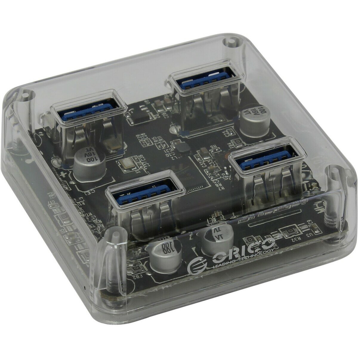 USB-концентратор, на 4xUSB-A 3.0 порта, Orico MH4U-U3, прозрачный [ORICO-MH4U-U3-10-CR-BP]