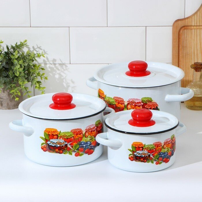 Стальэмаль Набор посуды "Варенье", 3 шт: 1,5 л, 2,9 л,4,5 л, цвет белоснежный