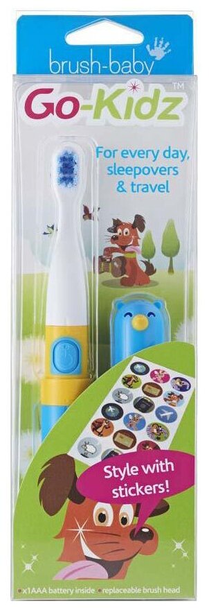 Лучшие цены. Детская электрическая зубная щётка Brush-Baby Go-Kidz голубого цвета – новый продукт для ежедневного ухода за полостью рта. Позволяет малышам не только качественно заботиться о своих зубах дома, в гостях или путешествии, но и делает этот процесс увлекательным. Прибор можно применять детям с 3-х лет, он полностью безопасен. Браш Бэйби имеет специальный колпачок для поддержки в чистоте чистящей головки не только во время путешествий, но и при любом бытовом хранении. Магазины в вашем городе.