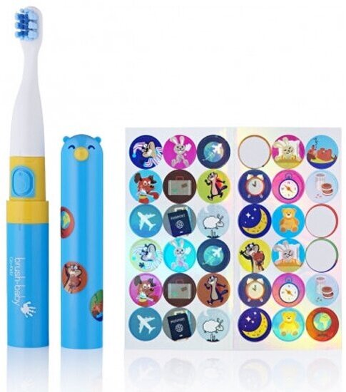 Детская электрическая зубная щетка Brush-baby Go-Kidz, синяя, от 3-х лет с наклейками