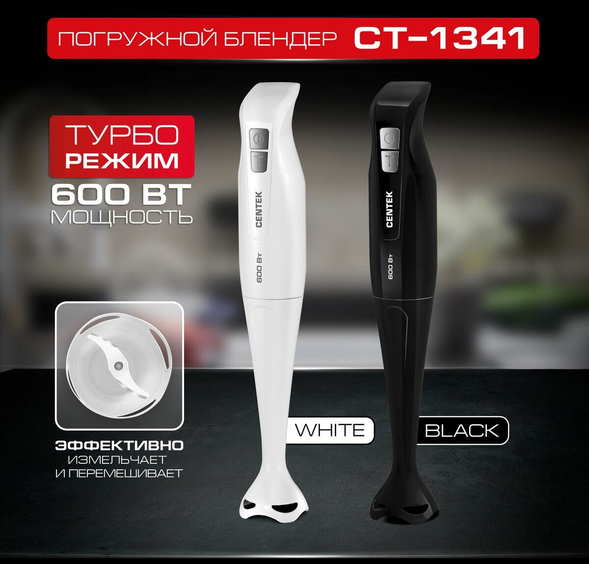 Погружной блендер CENTEK CT-1341, черный